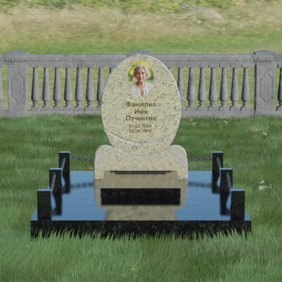 Данное ритуальное изделие притягивает взгляд своей совершенной гармонией и мягкостью линий. В основе композиции лежит безупречный овал — символ вечности, завершенности и бесконечного круговорота жизни. В отличие от строгих прямоугольных форм, эта стела выглядит более одухотворенно и спокойно, привнося на место захоронения атмосферу умиротворения. Особое внимание заслуживает художественная обработка основания: овальная плита плавно переходит в изящную подставку с мягкими «плечами» или волнообразными изгибами, которые создают надежную опору для всей конструкции. Каждая грань камня проходит многоступенчатую ручную и станочную обработку, что позволяет добиться идеальной гладкости. Отсутствие острых углов делает надгробие визуально легким, несмотря на значительный вес натурального камня.