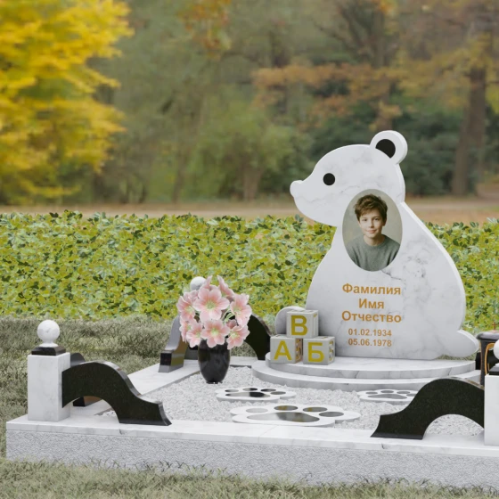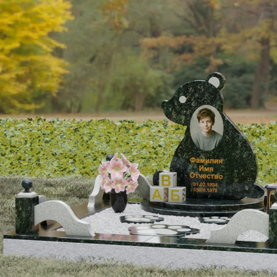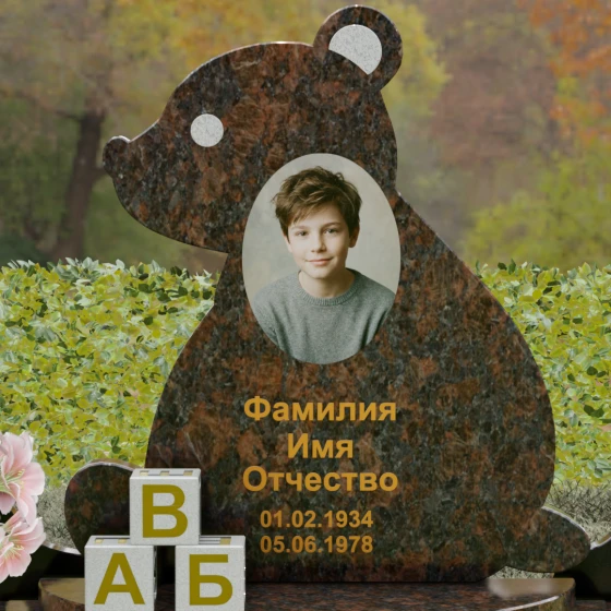Кому подойдет: Данная модель разработана специально для оформления захоронения ребенка. Она идеально подходит родителям, желающим выразить свою безграничную любовь и горечь утраты через светлый и понятный образ. Сочетание монументальности натурального гранита и трогательной формы «мишки» позволяет создать атмосферу светлой памяти, подчеркивая, что душа близкого человека навсегда останется окруженной заботой и теплом.