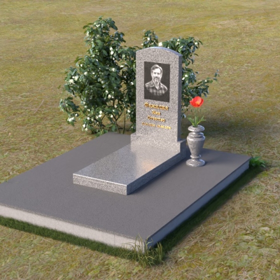 Благодаря своей лаконичной форме, эта стела предоставляет широкие возможности для оформления. Портрет усопшего будет гармонично смотреться как в верхней части стелы, так и чуть ниже центра. Золотое тиснение имени и дат жизни будет элегантно выделяться на фоне полированного камня, создавая четкий и легко читаемый образ. Небольшая тумба, расположенная перед стелой, может служить местом для возложения цветов и памятных вещей. Мы рекомендуем выбирать для этой модели сдержанные, лаконичные шрифты, которые подчеркнут общую элегантность композиции. Подумайте о возможности добавления небольшого бронзового барельефа или скульптуры, отражающей профессию или увлечения ушедшего человека. Это добавит индивидуальности и сделает место памяти еще более личным и значимым. Ваза, выполненная в едином стиле с монументом, завершит композицию и придаст ей законченный вид.