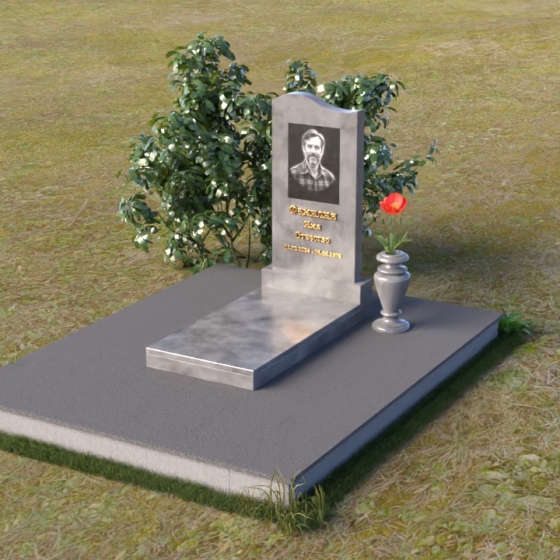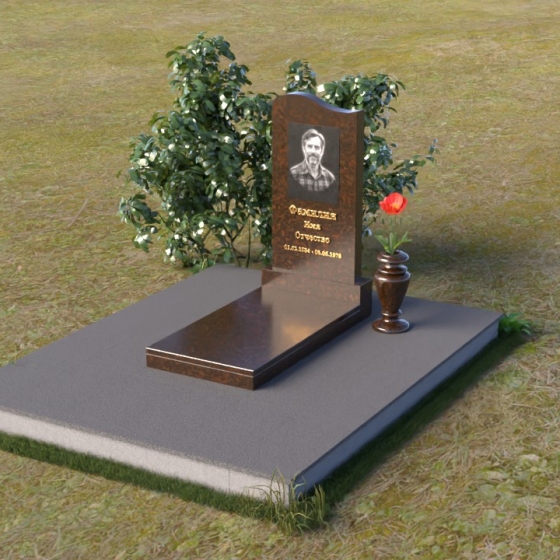 Мемориальная композиция ПВ 010 представляет собой тщательно продуманное архитектурное решение, где каждый элемент несет свою смысловую нагрузку. Стела выполнена в форме строгой, но элегантной арки, с плавным, закругленным верхом, словно стремящимся ввысь. Боковые грани стелы аккуратно скруглены, смягчая строгость формы и придавая ей ощущение спокойствия и завершенности. На лицевой стороне выгравирован портрет усопшего, выполненный с высоким уровнем детализации, а ниже – надпись с именем и датами жизни. Отдельно стоит отметить подставку под стелу. Она имеет прямоугольную форму с зеркальной полировкой, которая отражает небо и окружающий пейзаж, создавая ощущение легкости и воздушности. Скошенные фаски по периметру подставки добавляют ей изысканности и подчеркивают четкость линий.