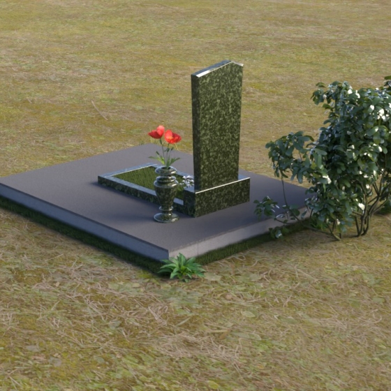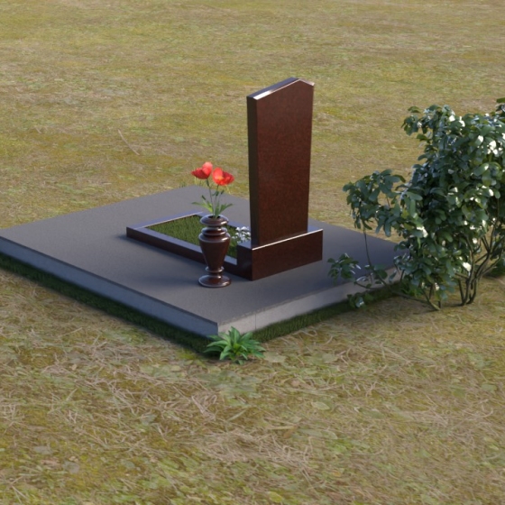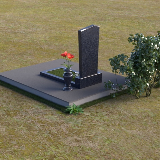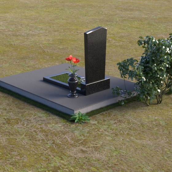Геометрия модели продумана до мелочей. От основания, представляющего собой широкую плиту серого цвета с шероховатой фактурой, взгляд плавно переходит к горизонтальной накладке из полированного черного гранита, словно застывшему зеркалу. Затем – к вертикальной плите, устремленной ввысь. Скошенная верхняя грань плиты придает ей динамику и визуальную легкость, избегая ощущения тяжеловесности. Четкие линии и прямые углы подчеркивают строгость и сдержанность композиции, в то же время полированная поверхность дарит ощущение тепла и уюта.