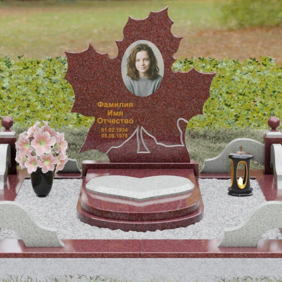 Данная мемориальная композиция — это воплощение глубокого уважения и вечной памяти, облаченное в художественную форму. Выбор формы кленового листа не случаен: в мировой символике он олицетворяет силу духа, красоту жизненного пути и мудрость. Каждая линия этой стелы пропитана эстетикой природного изящества. Резные края листа выполнены с филигранной точностью, создавая сложный, многогранный силуэт, который выделяется на фоне классических строгих форм. Плавные изгибы и отсутствие агрессивных углов призваны дарить чувство покоя и умиротворения, подчеркивая, что душа близкого человека обрела вечный приют в гармонии.