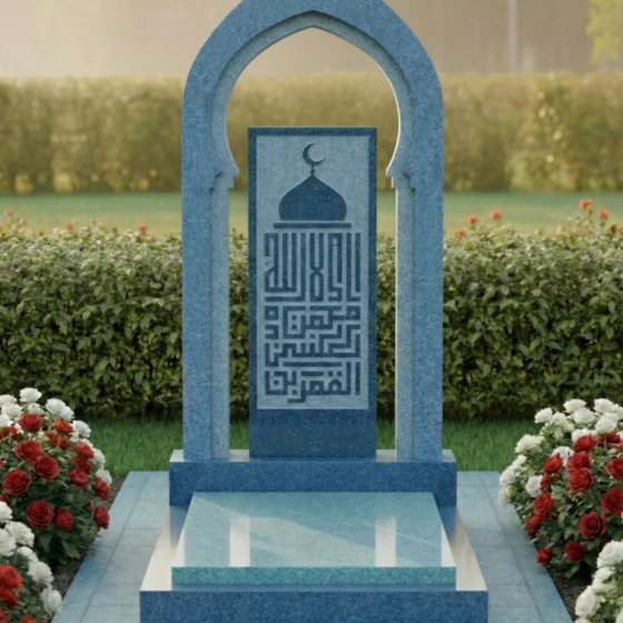 Представляем вашему вниманию модель памятника ПН 506 – это не просто надгробие из натурального камня, а истинное произведение искусства, призванное увековечить светлую память о близком человеке с глубоким почтением и достоинством. Каждая линия, каждый изгиб этого монумента пронизан смыслом и гармонией, создавая ощущение вечности и спокойствия. Центральная стела выполнена в форме изящной арки, напоминающей вход в священное место или портал в иной мир. Ее грани тщательно обработаны, создавая плавные переходы от полированных, зеркальных поверхностей к матовым, словно слегка припорошенным временем, срезам камня. Эта игра контрастов черного и серого гранита придает монументу невероятную глубину и объем, позволяя свету скользить по камню, подчеркивая его благородную текстуру. Внутри арки расположена прямоугольная вставка из светлого гранита, на которой выгравирована сложная каллиграфическая композиция, увенчанная полумесяцем и звездой – символами ислама. Эта гравировка выполнена с поразительной детализацией, где каждый элемент орнамента и каждая буква прорисованы с ювелирной точностью, создавая эффект кружевного узора, который кажется вырезанным из самого камня. Благодаря контрасту светлой гравировки на темном фоне, надпись читается легко и выразительно, притягивая взгляд и приглашая к размышлениям.