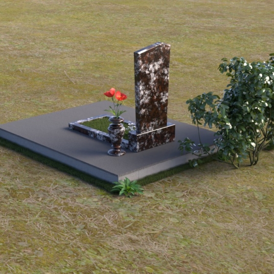 Геометрия модели продумана до мелочей. От основания, представляющего собой широкую плиту серого цвета с шероховатой фактурой, взгляд плавно переходит к горизонтальной накладке из полированного черного гранита, словно застывшему зеркалу. Затем – к вертикальной плите, устремленной ввысь. Скошенная верхняя грань плиты придает ей динамику и визуальную легкость, избегая ощущения тяжеловесности. Четкие линии и прямые углы подчеркивают строгость и сдержанность композиции, в то же время полированная поверхность дарит ощущение тепла и уюта.